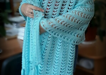 Вязаный палантин, мохер 40% акрил 60%, очень нарядный, нежный, ажурный, теплый.