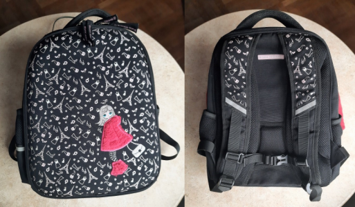 Рюкзак школьный каркасный Bruno Visconti "Настроение" (черный) (12-001/30) Очаровательная девочка в меховой шубке и сапожках...