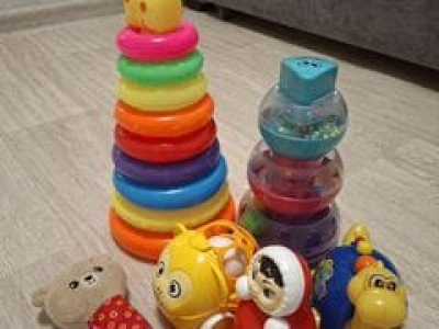 пирамидка жирафик 30см, пирамидка-погремушка, мягкий медвежонок-пищалка, машинка-погремушка, неваляшка, динозаврик на...