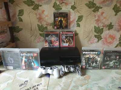 Игровая приставка плейстейшен 3 все и идёт в комплекте, вот что на фотографии все диски 2 геймпада есть маленькая царапина...