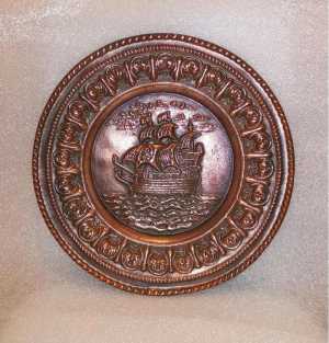 Большая настенная тарелка - панно. Литьё - начало 20 века (Европа) Морская тематика