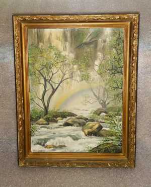 Картина: Водопад в радуге. Автор: Н. Власова. 2001 год. Холст на ДВП