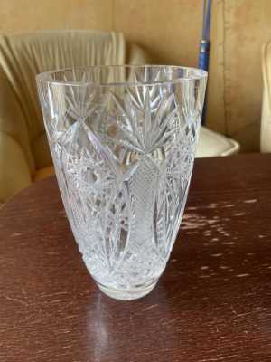 Ваза хрустальная СССР. Высота 23 см. Диаметр по верху 12,5 см, дна 6,5 см. Сколов и трещин нет.