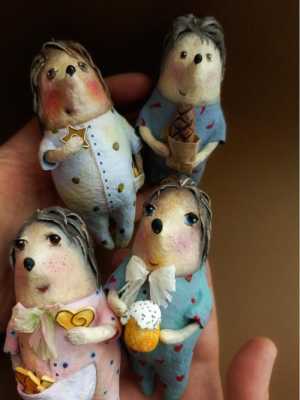 Рост 15 см. Материалы: вата, клейстер, проволока, полимерная глина, акриловые краски.