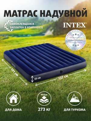 Описание Новый надувной матрас Intex 137х191х25см полутораспальный.