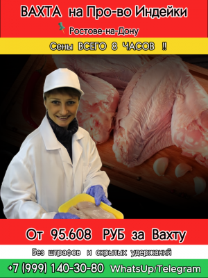 """*ВАХТА НА ПРО-ВО ПОЛУФАБРИКАТОВ ИЗ ИНДЕЙКИ ✅НАВЕСЧИК* 📍 Ростовская область, п.