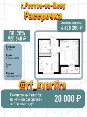 Продам квартиру в новом доме в рассрочку в Ростове-на-Дону Квартира с Ремонтом Рассрочка с ежемесячным платежом от 20...