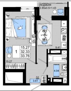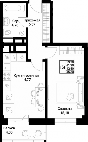 Продаю однокомнатную квартиру в новом Жилом Комплексе класса Комфорт Плюс. Планировка Евро2, кухня-гостиная 21,43м.кв.