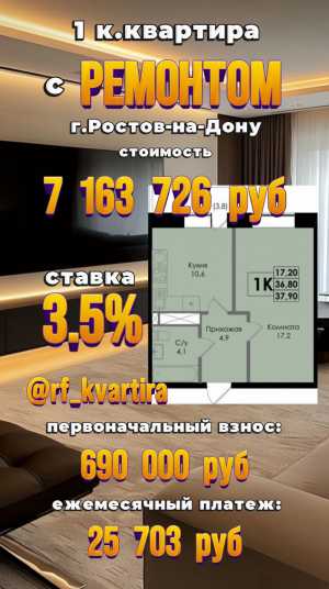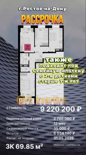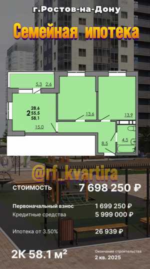 Продам 2 к квартиру в Ростове-на-Дону Стоимость 7 698 250 рублей Подходит Под Семейную ипотеку по ставке 3.