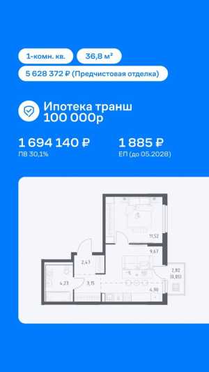 Тип объявления: Продам; Вид объекта: Новострой; Количество комнат: 1; Тип дома: Кирпичный; Площадь: 36; Этаж: 9; Этажей в доме: 17;