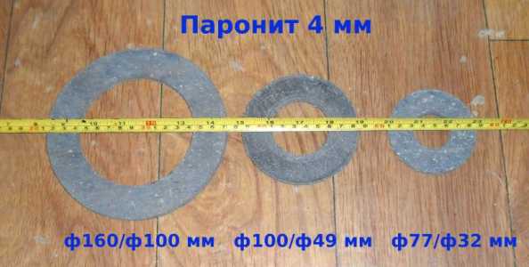 Прокладки паронит 4 мм ф160 / ф100 мм по 200 Р ф100 / ф49 мм по 150 Р ф77 / ф32 мм по 100 Р Всех по 20-30 штук. Остатки.